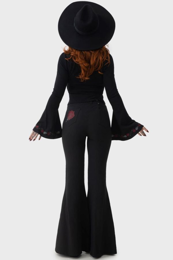 – Long, flared sleeves.