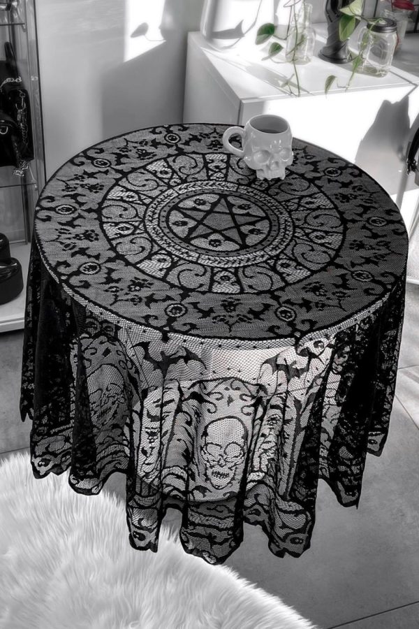– All over print featuring leaves, skulls, pentagrams, bats and more.